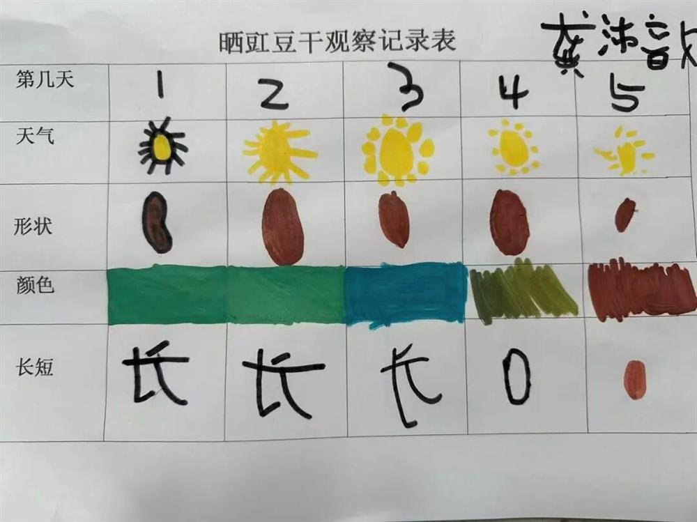 孩子们每天都满怀期待地去观察豇豆宝宝们变化,并把这些变化都记录下来。