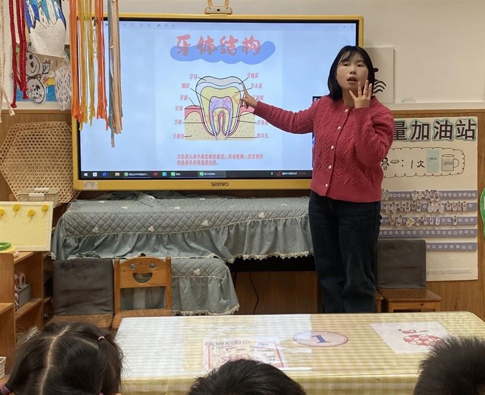 在《牙齿小课堂》中,孩子们了解了牙齿分为乳牙和恒牙,知道牙齿由牙冠、牙颈、牙根组成,牙冠外层的牙釉质保护牙齿,牙本质和牙髓是重要组成部分。同时明确了牙齿的三大作用:咀嚼食物、协助发音、保持脸型美观,懂得了保护牙齿的重要性。